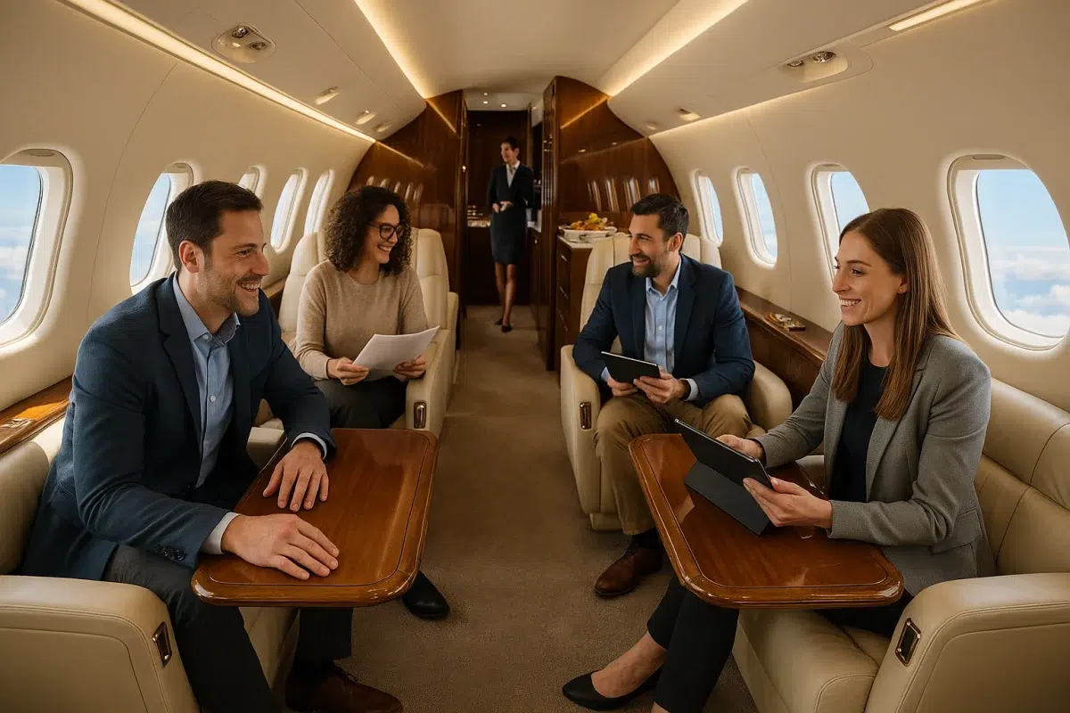| Super Midsize Jet | 8–10 | Senior leadership retreats | Full stand-up cabin, club seating, galley |